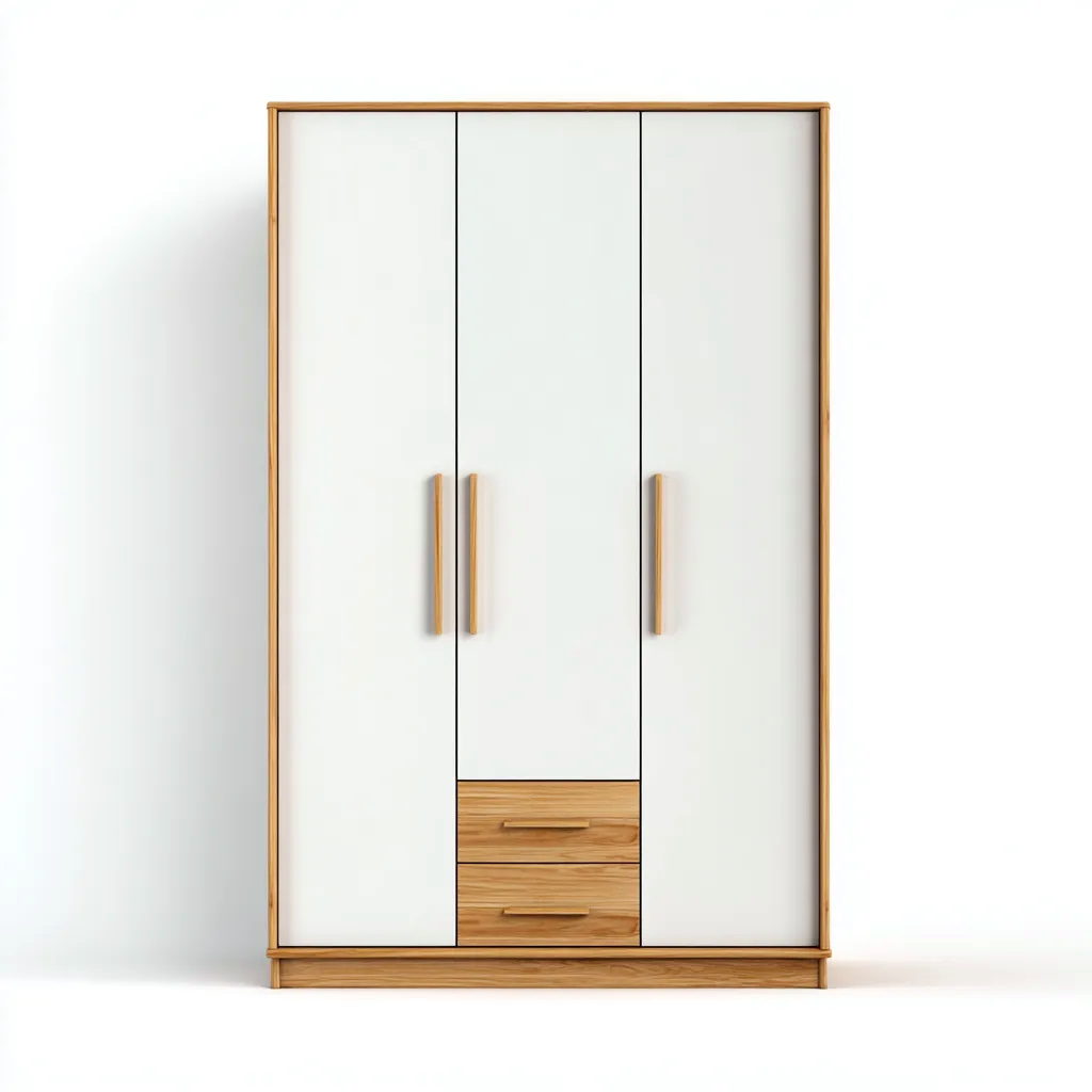 Armoire 3 portes - MDF-Bois - 142x60x198 cm - Blanc-Naturel - Style contemporain