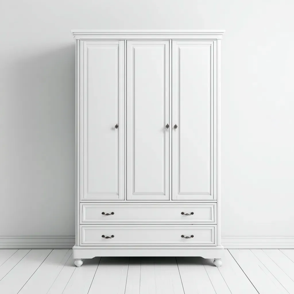 Armoire 3 portes - Bois - 150x60x205 cm - Blanc - Style classique