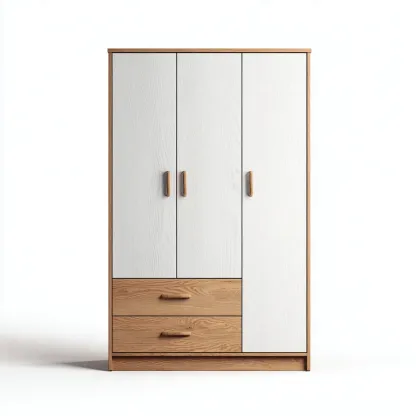 Armoire 3 portes - MDF-Bois - 138x57x192 cm - Blanc-Naturel - Style contemporain