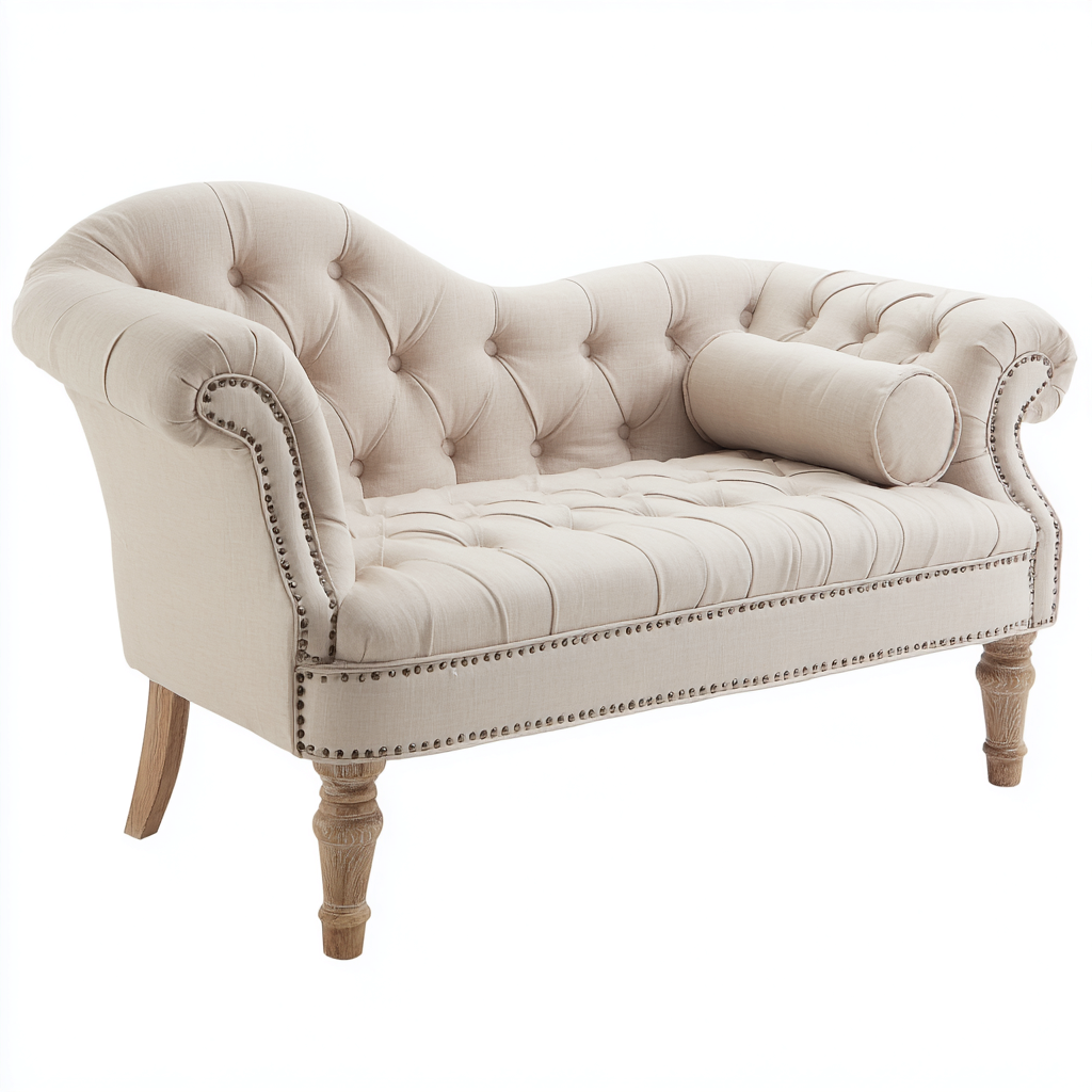 Chaise longue tissu capitonné 175x78x82 cm - beige - style classique