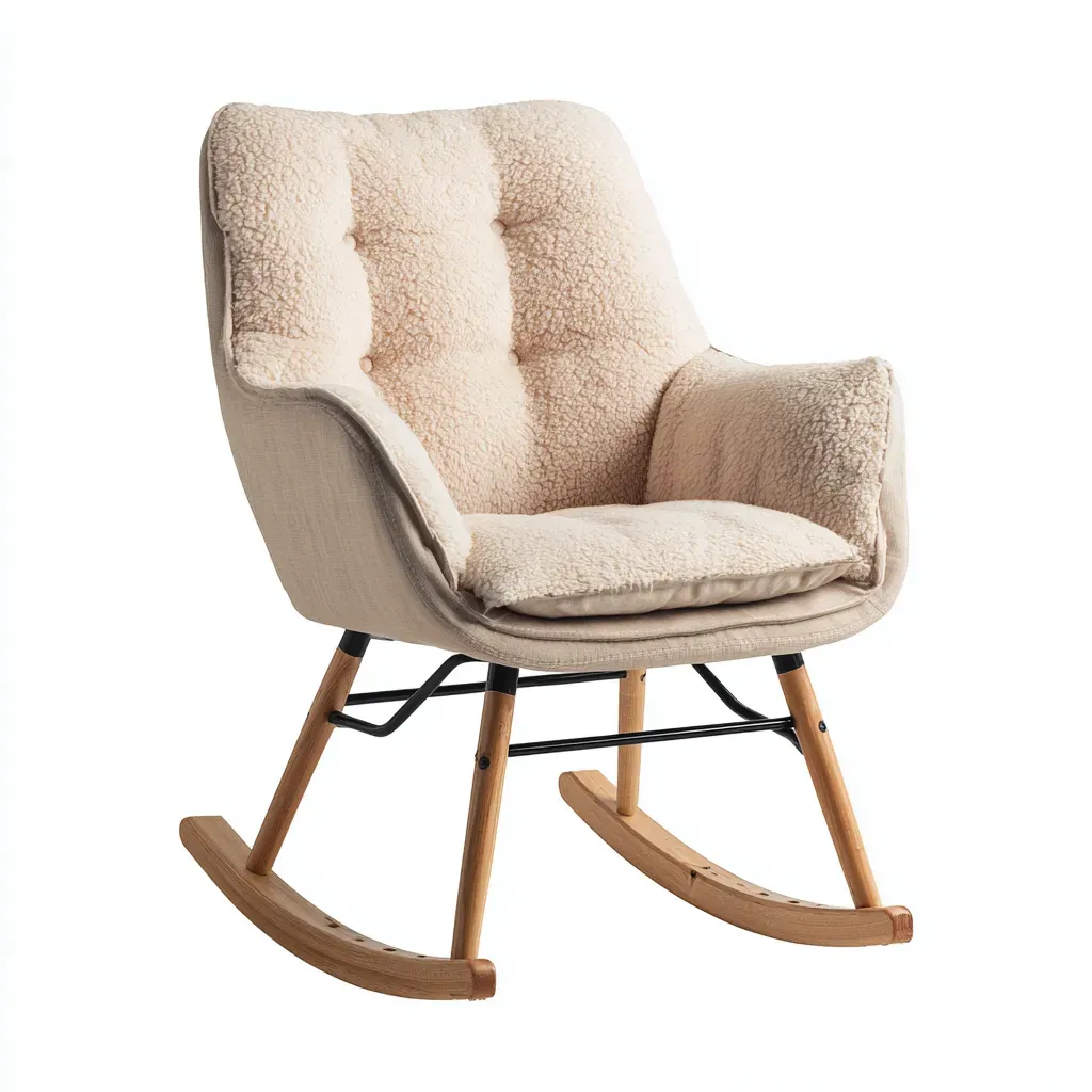 Fauteuil à bascule - tissu bouclé-bois-métal - 74x82x96 cm - beige - style scandinave