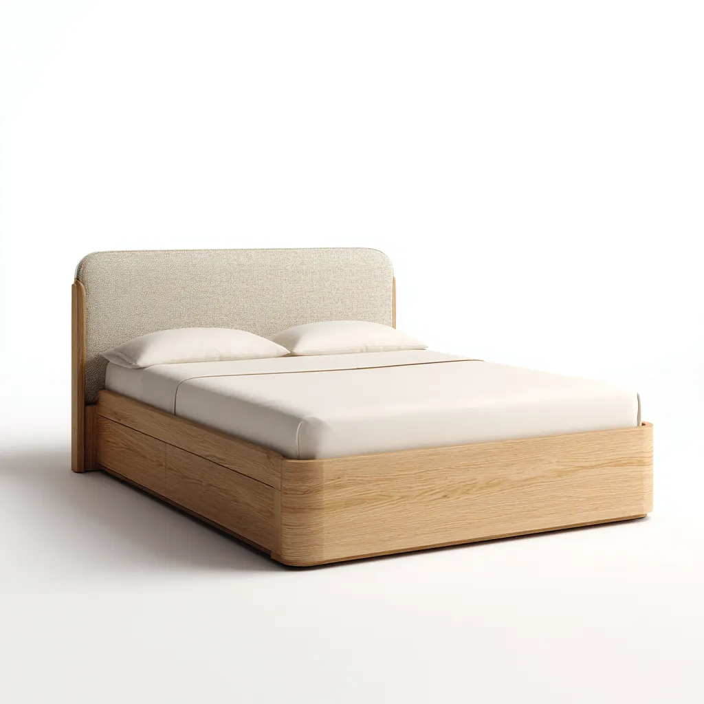 Lit double avec tête de lit rembourrée en bois naturel 200x160x100 cm - structure stable - style moderne